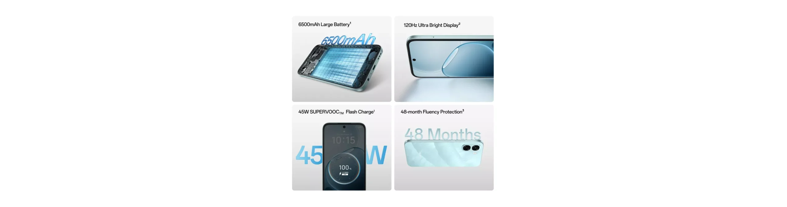 - Flash Charge: 45W SUPERVOOC™ Fast Charging