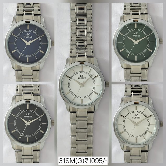 RUBEES 31SM(G) gents wrist watch with silver metal strap, quartz analog movement, and multiple dial colors. Affordable style under ₹2000 with 1‑year warranty.