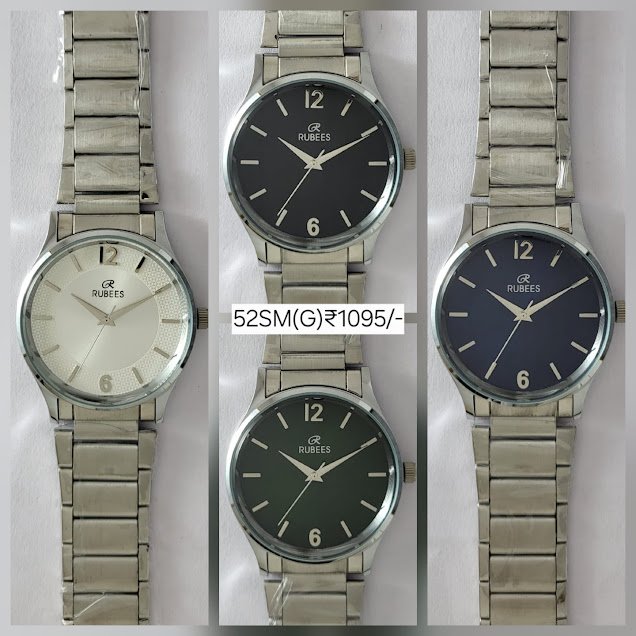 RUBEES 52SM(G) gents wrist watch with silver metal strap, quartz analog movement, and multiple dial colors. Affordable elegance under ₹2000 with 1‑year warranty.