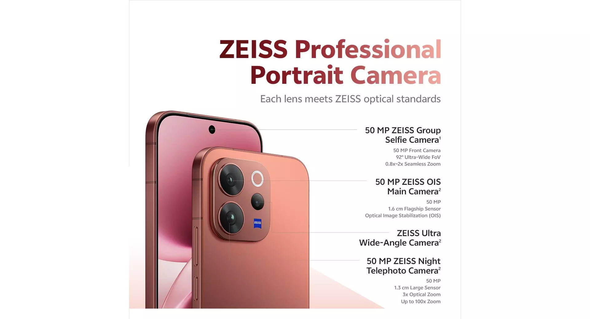 - 50 MP ZEISS OIS main camera: AF & OIS, f/1.88, FOV 84°, 6P lens